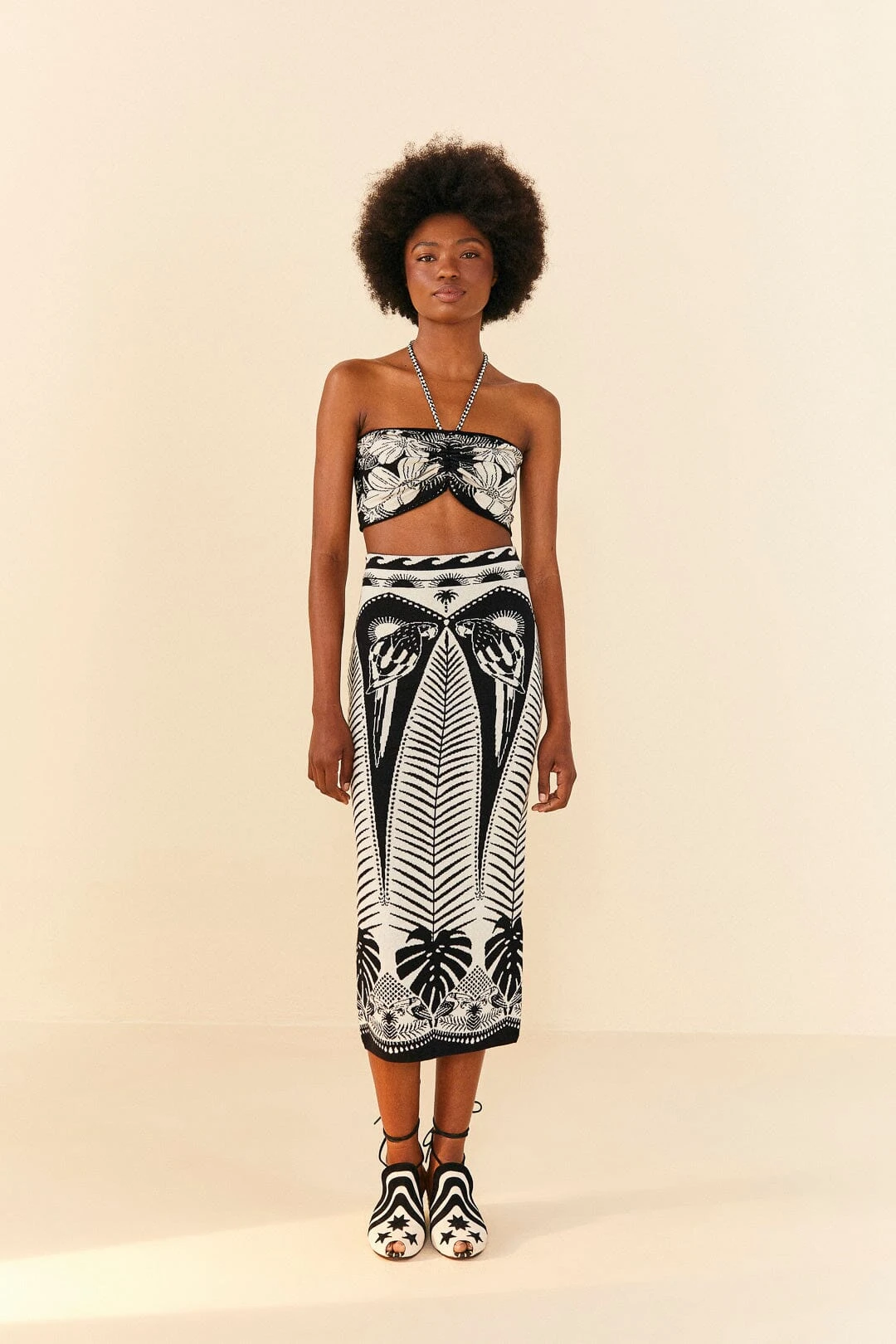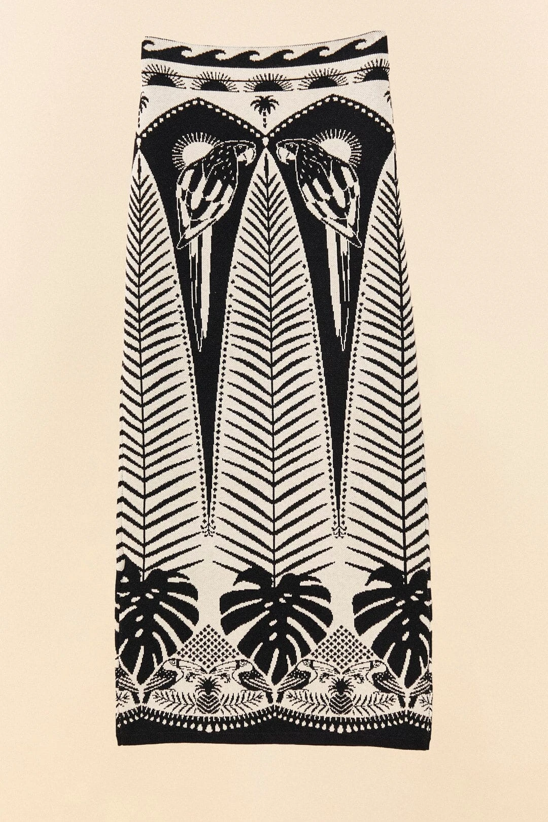 Meet our signature print inspired by the natural beauty of our hometown, Rio. The Black Macaw Elegance Knit Skirt has the silhouette you want to ace all beach-to-bar situations with the length to show some skin (it misses the sun, baby!). Invite your fresh tops, from blouses to cropped ones (have you seen the Black Macaw Elegance Knit Top? A WOW match!) to make a Spring-statement, and also standout shoes to go turn any destination into your happy place!