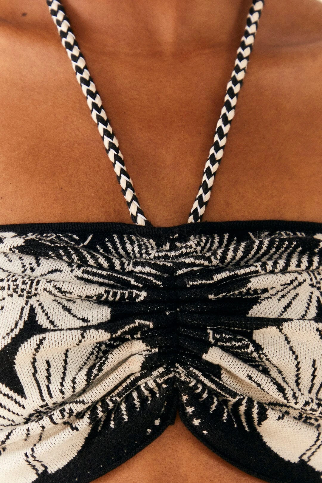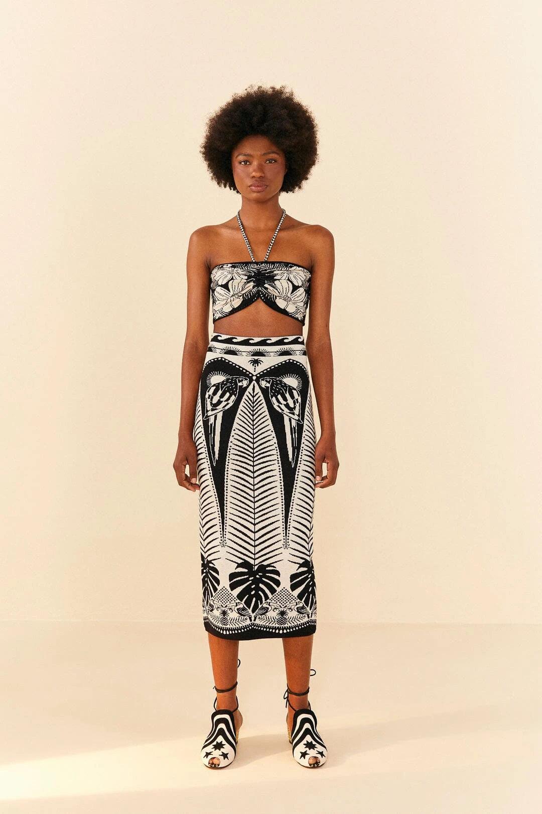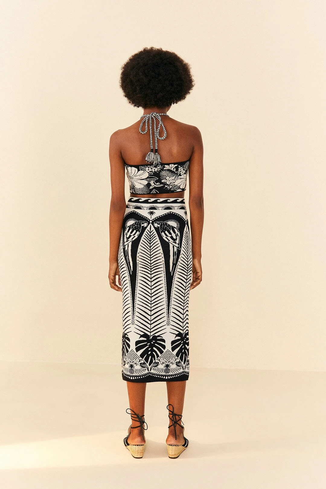 Meet our signature print inspired by the natural beauty of our hometown, Rio. The Black Macaw Elegance Knit Top has the silhouette you want to ace all beach-to-bar situations with a halter neckline and the cropped style to show some skin (it misses the sun, baby!). Invite your fresh bottoms, from skirts to pants to shorts (have you seen the Black Macaw Elegance Knit Skirt? A WOW match!) to make a Spring-statement, and also standout shoes to go turn any destination into your happy place!