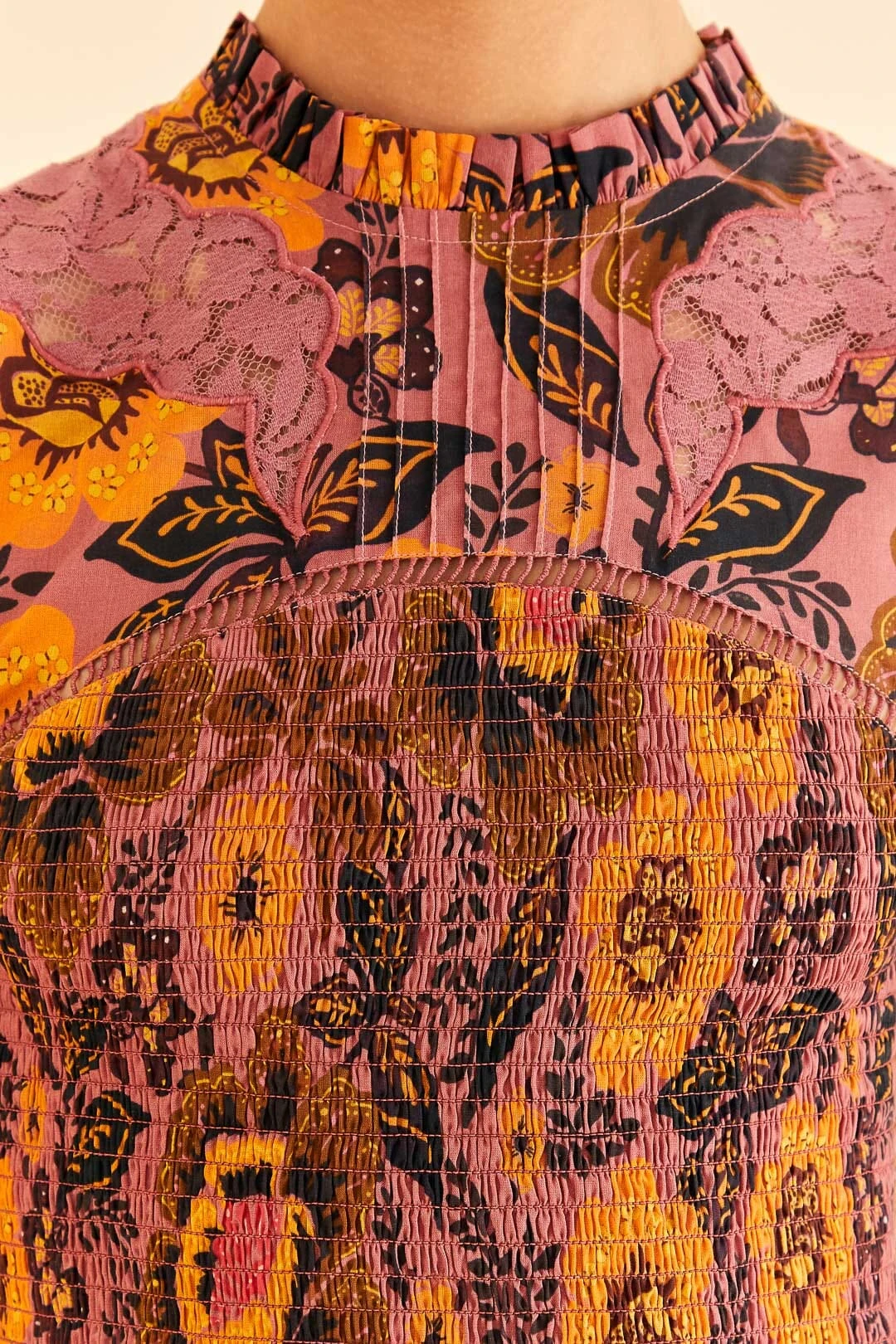 Farm Rio Blush Garden Bloom Smocked Blouse