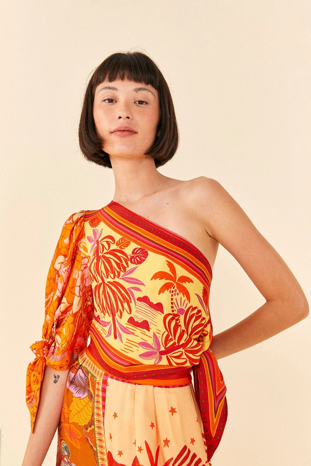 Farm Rio Forest Mixed Scarves Lenzing™ Ecovero™ Viscose Crop Top