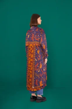 - Open back detailing with beaded-button closure