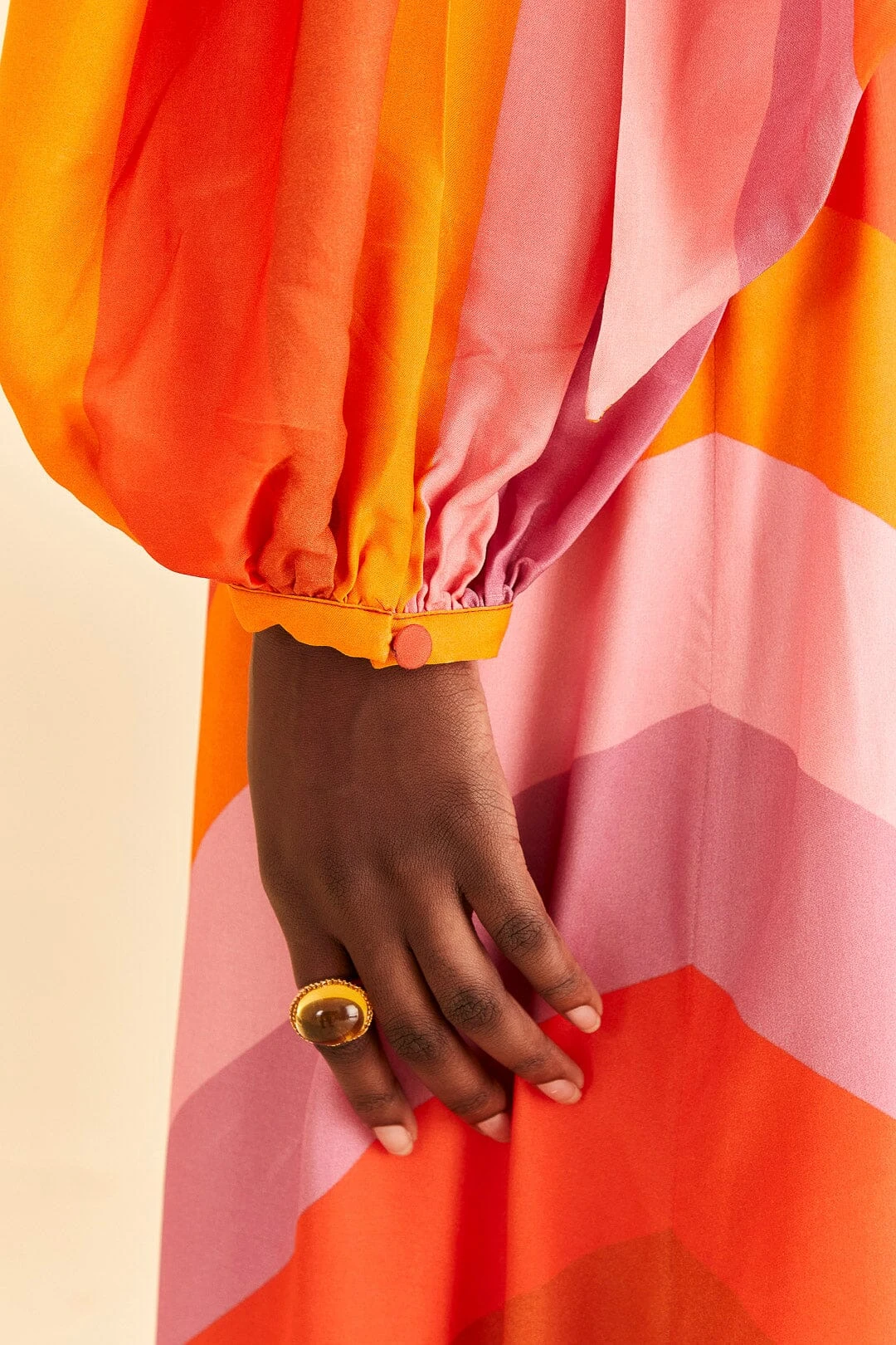 Farm Rio Party Stripes Multicolor One Shoulder Maxi Dress