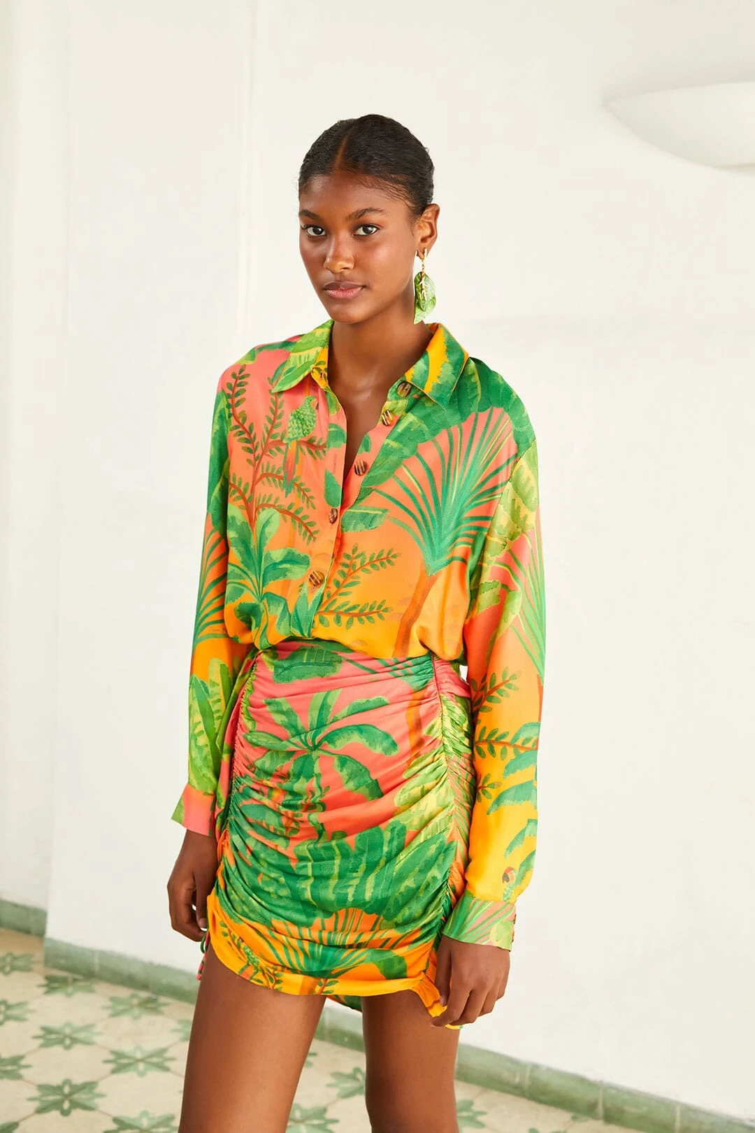 Cheers to more sunlight hours to be in the far-from-ordinary Sunrise Scenario Lenzing™ Ecovero™ Viscose Shirt! It features an easy-breezy silhouette with versatile buttons to follow your bold moves all season long. Your bottoms in the same print or color palette, bold shoes, and artisanal accessories are also invited to complete the tropical look, and you’ll be ready to express your bold self in every place 🙂